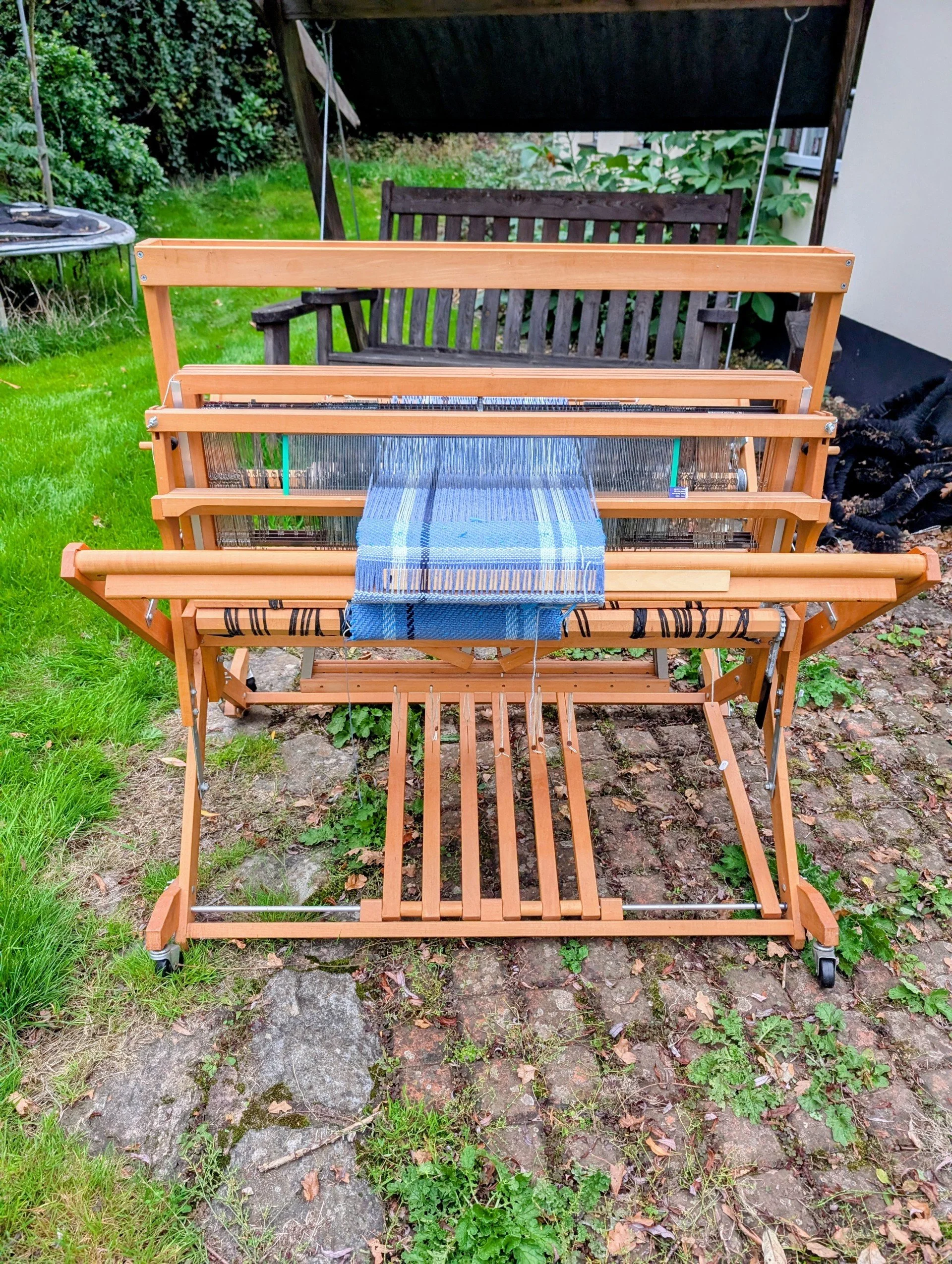 Schacht Mighty Wolf Four-shaft jack-style floor loom. Very easy to use having stainless steel heddles and a very direct action.